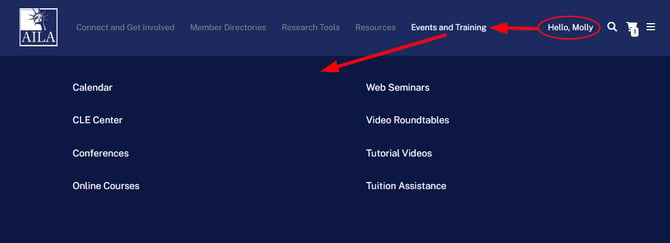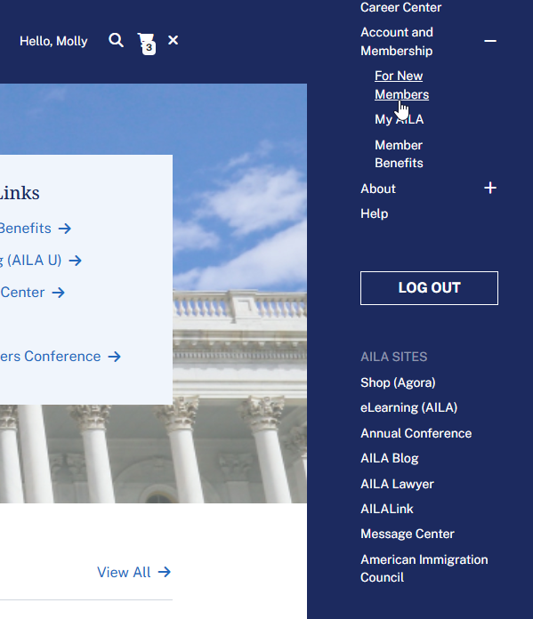 Log in to AILA.org and click the three horizontal lines at the top-right of the page to navigate to Resources for New Members, to other AILA sites, and more.