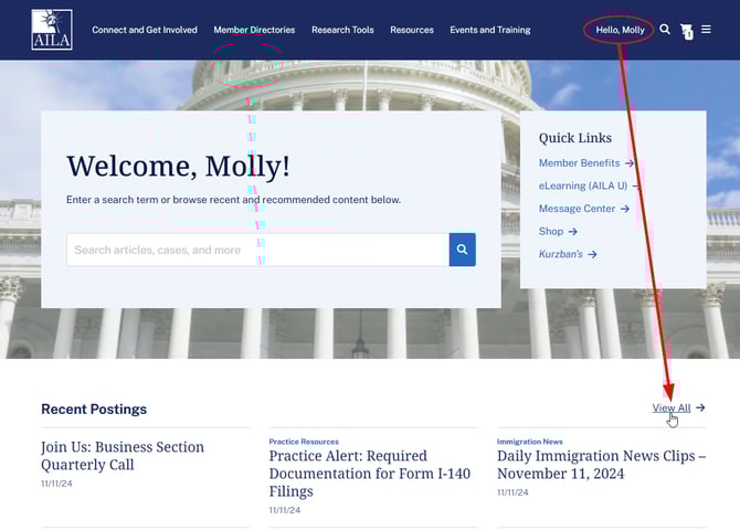 Keep up to date with the latest developments in immigration law by visiting AILA's Recent Postings. Log in to AILA.org and click on View All at the top-right of Recent Postings on the homepage.