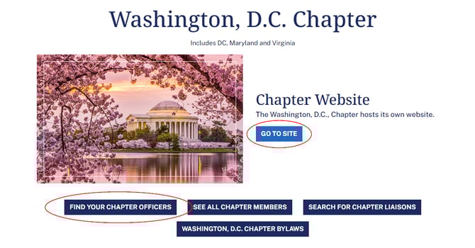 Click "Go to Site" to navigate to your chapter's website. If you need assistance logging in to your chapter website, contact your Chapter Secretary for assistance using the "Find Your Chapter Officers" link.