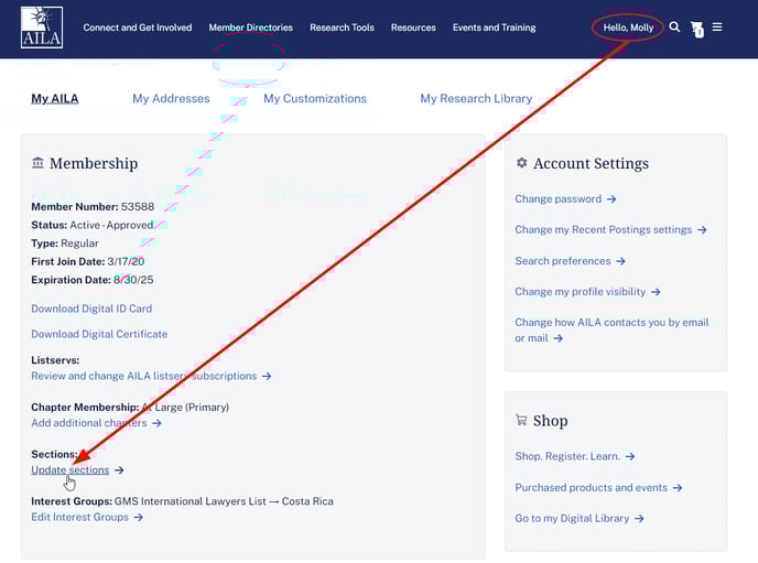 The Global Migration Section (GMS) is not a member type or an affiliation. The GMS is a Section, a community of AILA members and IAs interested in furthering the practice of global migration. The Section is free to join for AILA members and IAs, and does not require an application to join. If you are interested in joining, log in to AILA.org and click on the welcome message at the top-right of the page to navigate to your My AILA page. Click Update Sections in the Membership pane.