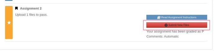 If your file failed to upload, click on the red "Submit New Files" button in the assignment to attempt another upload.