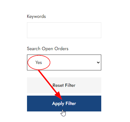 This will open your Order History. You can filter the items you see to just the one in which you're using a payment plan. On the left side of the page, click on the drop-down menu underneath "Search Open Orders," choose "Yes," then click "Apply Filter."