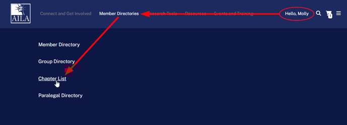 Log in to AILA.org and click on "Member Directories" from the menu at the top. From the drop-down menu, click on Chapter List.